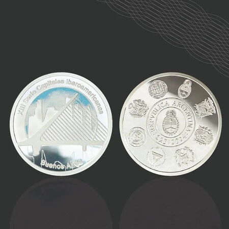 The Central Bank of the Argentine Republic launched 2,500 units of a commemorative coin that is part of a project involving Spain, Portugal, and several countries in the region. Its image shows the Puente de la Mujer.