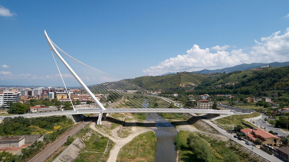 For years, officials in the small Italian city of Cosenza have been working on an ambitious urban regeneration project. One of their primary goals was to bridge the gap between two neighborhoods, Contrada Gergeri and Via Reggio Calabria, which are naturally separated by the Crati River (a body of water that eventually feeds into the Ionian Sea). Naturally, they decided on constructing a bridge to unite the two areas. But they didn’t want any bridge—they wanted one with such flair and originality that it would become a landmark in and of itself. Which is why the city tapped world-renowned architect and engineer Santiago Calatrava for the task. And today, the new bridge has finally been completed.