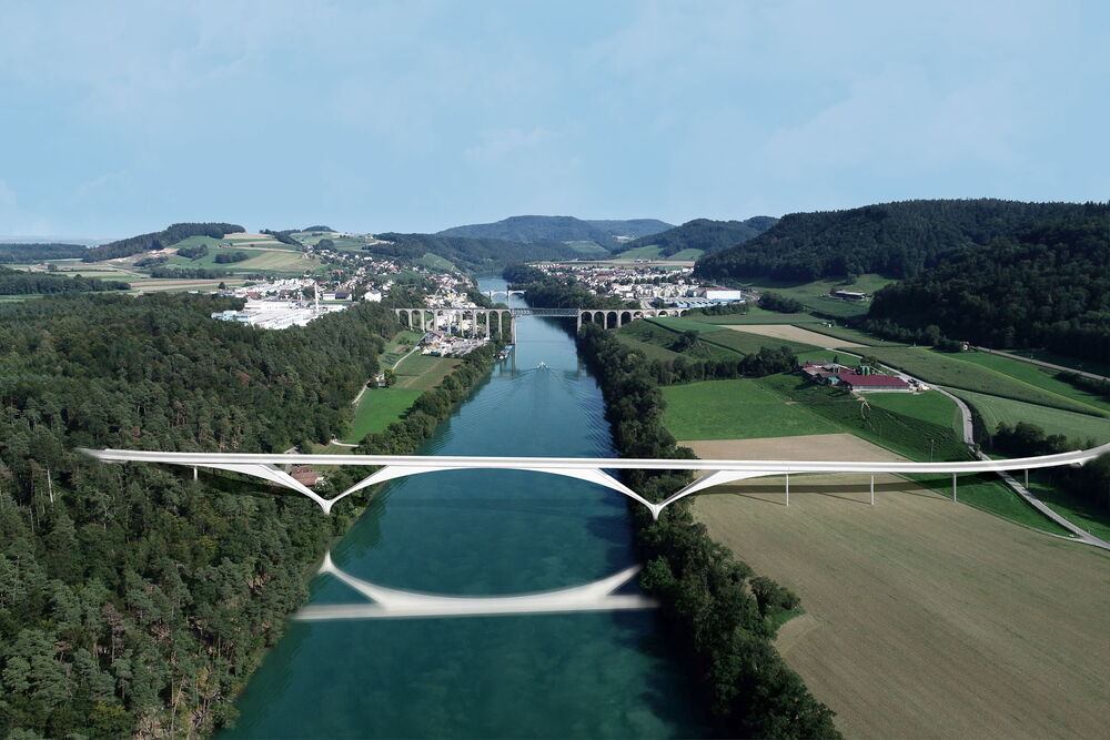 May 20, 2020 (Zurich, Switzerland) – In 2019, the Canton of Zurich launched an anonymous two-phased design competition which sought proposals for a bypass around the town of Eglisau, including a significant crossing over the River Rhine. The proposal from Architect and Engineer Santiago Calatrava was the chosen as the winner from a shortlist of 12 entries.