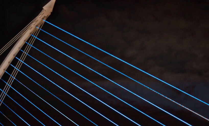 As harpist Aislings Ennis plucked the strings of her instrument — performing a unique piece of music composed specifically for the event — the corresponding cables were illuminated on Calatrava´s Samuel Beckett Bridge. A custom piece of software transformed the bridge into a playable instrument.